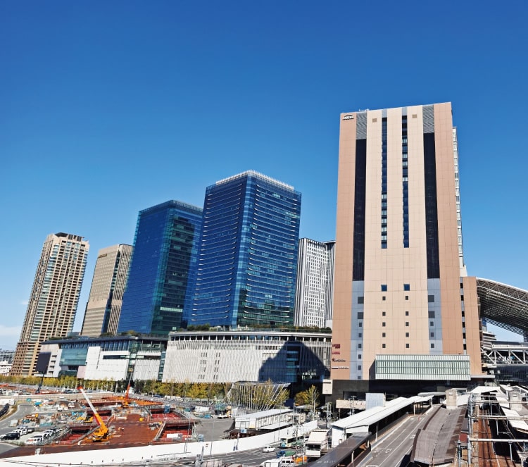 梅田は大阪の中でも、オフィスや百貨店、商業施設が集まる街で、様々な路線が集積しています。梅田の中心であるJR大阪駅は、神戸や京都まで30分程度でアクセスができ、関西圏の中でも、ビジネス・観光・ショッピングを目的に人が集まる最も主要な駅です。
