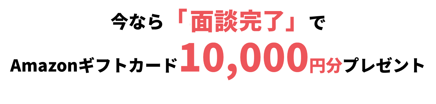 弊社とはじめての面談完了で10,000円相当のAmazonギフトカードの付与。